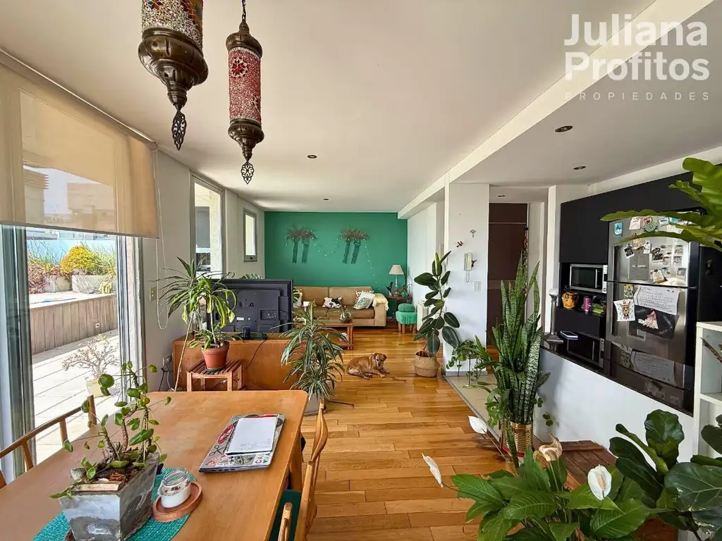 Desde la sala de estar accedemos a un balcón corrido de amplias dimensiones, que se extiende también hacia las habitaciones y cuenta con pileta y parrilla, ideal para disfrutar momentos al aire libre y reuniones con familia o amigos.