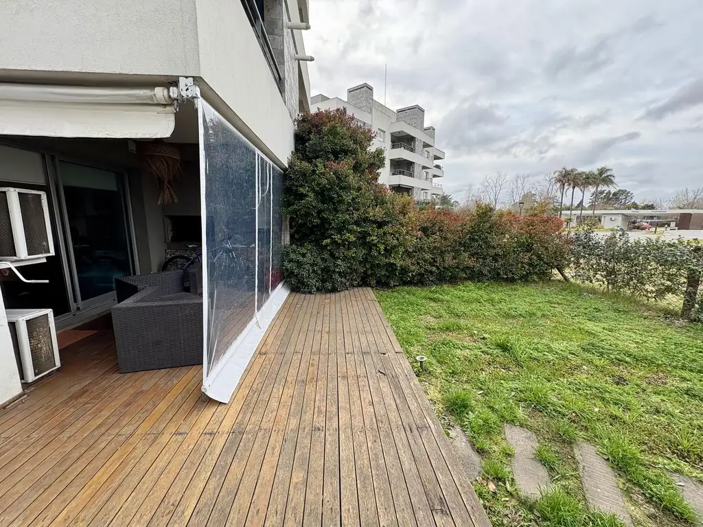 En el exterior, dispone de un jardín privado con acceso directo a los espacios comunes, galería techada con parrilla y toldos, además de una cochera fija semicubierta. La propiedad se destaca por su excelente orientación, vistas abiertas y detalles de confort como calefacción por losa radiante y equipos de aire acondicionado individuales.
