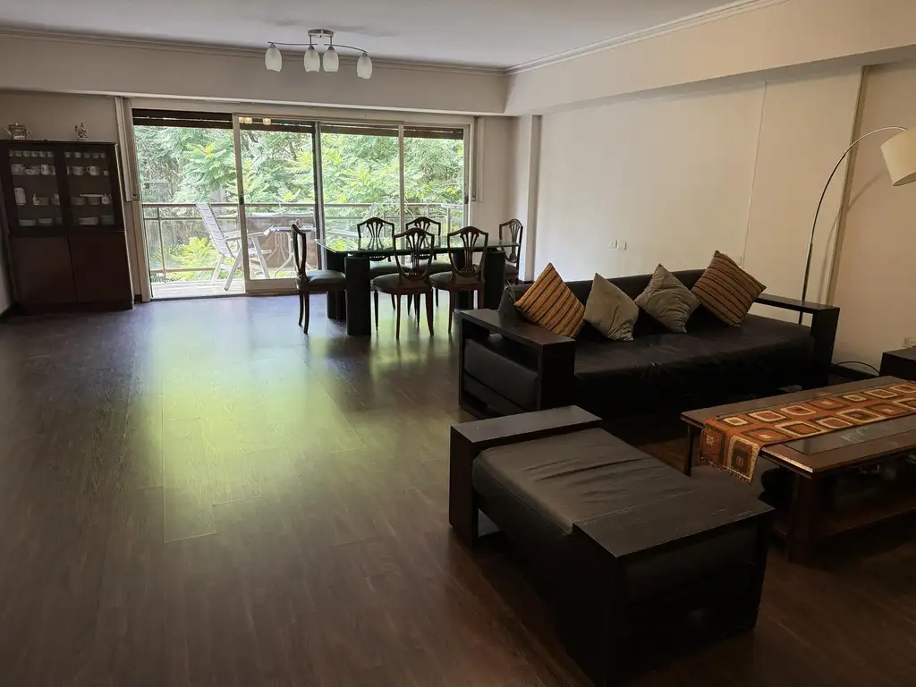 En un edificio de 5 pisos con dos unidades por piso se desarrolla este hermoso departamento de 150 mts. cubiertos y 10 mts. de balcón con tres dormitorios, dos baños completos, toilette, entrada principal y de servicio, dependencia de servicio, baulera y cochera.