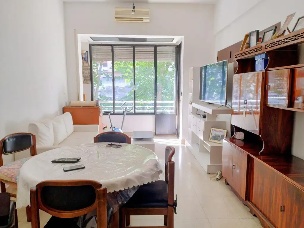 Amplio departamento al frente en 2do piso con vista verde (enfrente hay un estacionamiento) y sol de mañana por su orientación este.