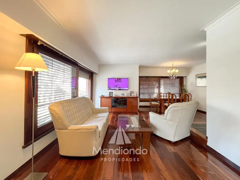 Amplio living comedor en "L" con pisos tarugados.