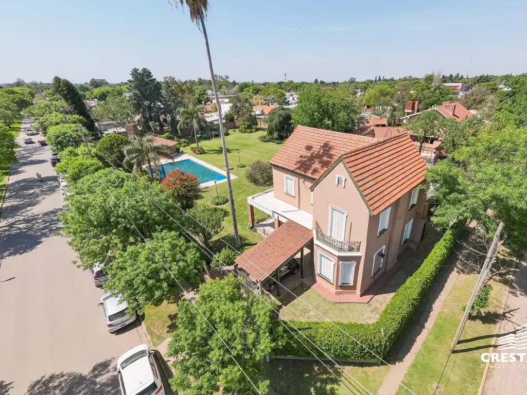 Pisos de pinotea en ambientes principales; aberturas de madera maciza; techos altos con tirantería a la vista; revestimientos en cerámica y mármol; escalera principal de madera trabajada; instalaciones actualizadas en cocina y baños; sistema de riego y piscina con equipamiento completo
