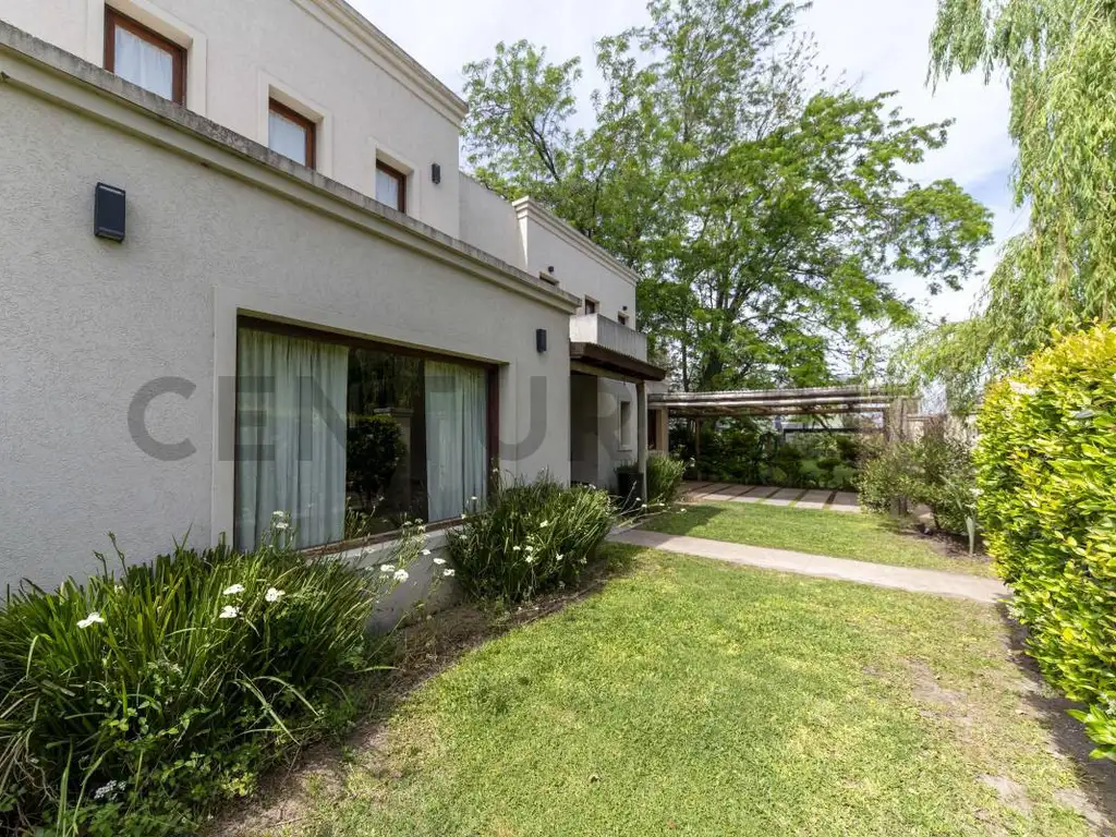 Saliendo por el living, la 2da galería semicubierta invita a disfrutar del aire libre, con vista al hermoso jardín y la piscina, rodeada de verde y con mucho espacio para disfrutar en verano.
