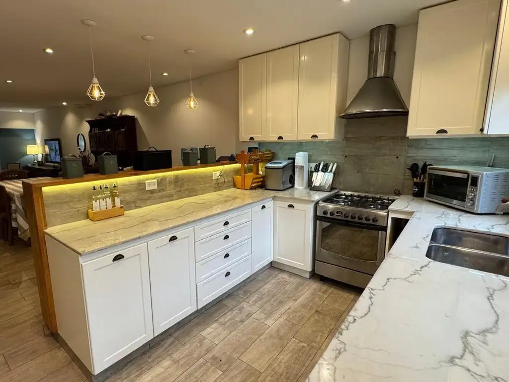 La cocina, funcional y cómoda, tiene salida directa al jardín y conexión con una baulera exterior.
