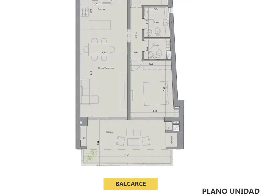 El área social se conecta con un gran balcón al frente, ideal para disfrutar del exterior y sumar espacio de uso cotidiano. La distribución está pensada para maximizar funcionalidad y confort, con ambientes generosos y muy bien iluminados.
