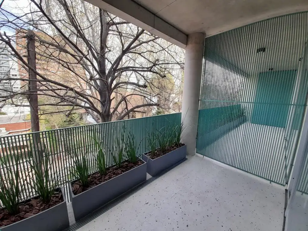 Living comedor con pisos revestidos porcelanato símil madera, en los cielos rasos se aprecia el hormigón visto. Carpintería de aluminio con doble vidriado hermético. Muebles de cocina, alacena , horno y anafe eléctrico.