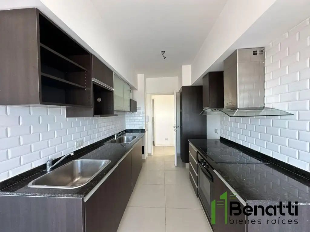 - Cocina independiente con comedor diario, equipada con anafe vitrocerámico, horno eléctrico, campana TST, mesada de granito y bacha Johnson, con conexión para lavavajillas o lavarropas.