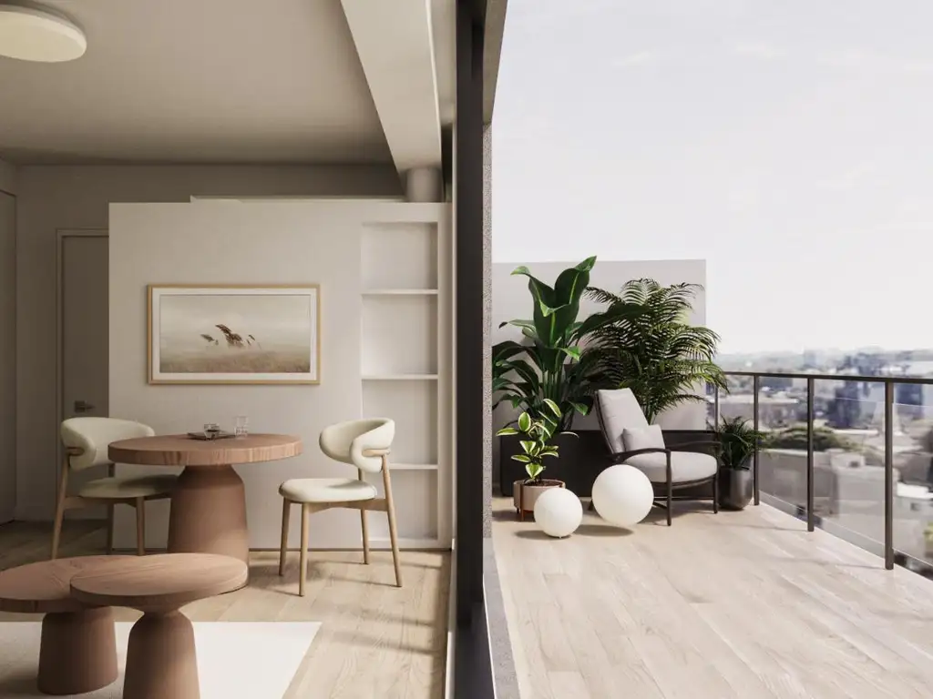 El departamento es un dos ambientes ubicado en un 8 piso, al ingresar cuenta con una cocina completa integrada con living comedor con salida a amplio balcon, espacio para habitacion.