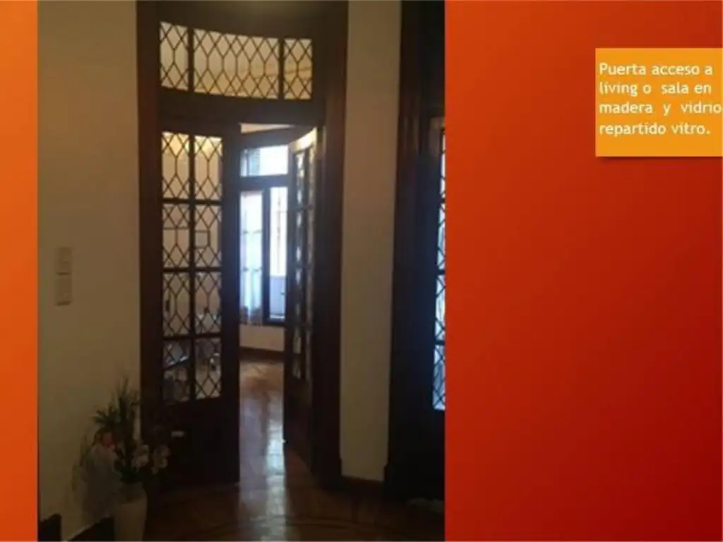 Ingreso a la propiedad por puerta doble de hierro forjado y vidrios repartidos, se transita por zaguán hasta atravesar puerta de madera lustrada con vidrios repartidos en vitro la cual desemboca a hall de recepción y distribuidor. A su lateral izquierdo sala o living con piso de parquet plastificado, ventanal de madera con vidrios repartido, celosia y rejas, a su lateral escalera de madera nogal con balaustres torneados, al lateral escalera comedor para visitas con piso de parquet y gran ventanal que desemboca a comedor diario. Acceso a comdor diario con piso de porcelanato en damero, techo de resina de poliester con fibra de vidrio montado sobre estructura de hierro logrando un ambiente hiper luminoso, cocina integrada a comedor diario con altos y bajo mesada en mármol mara gris, con escalera de mármol con barral en hierro forjado que desemboca primero a escritorio o cuarto de servicio con piso cerámico, placard, baño con ducha, lavadero con instalación lavarropas, termotanque semi nuevo y por último a quincho con parrilla y horno para pan y pizza. Accediendo por escalera interna de madera hall distribuidor que desmeboca a las tres habitaciones todas con pisos de pinotea, placard, venitaldores de techo y aires frio calor, baño completo. Garaje para auto grande o 4x4 con baulera. Las medidas son aproximadas y las mismas exactas surgirán del estado parcelario.