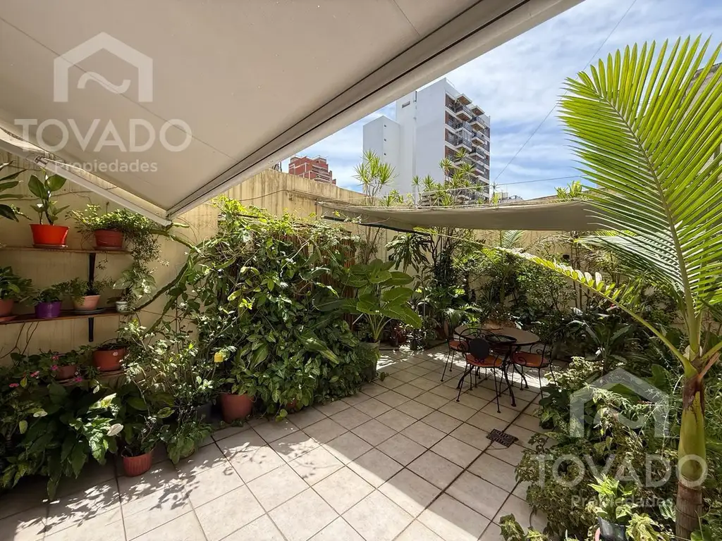El patio de 51 m2 da al pulmón de manzana, y tiene toldos que generan mayor privacidad.