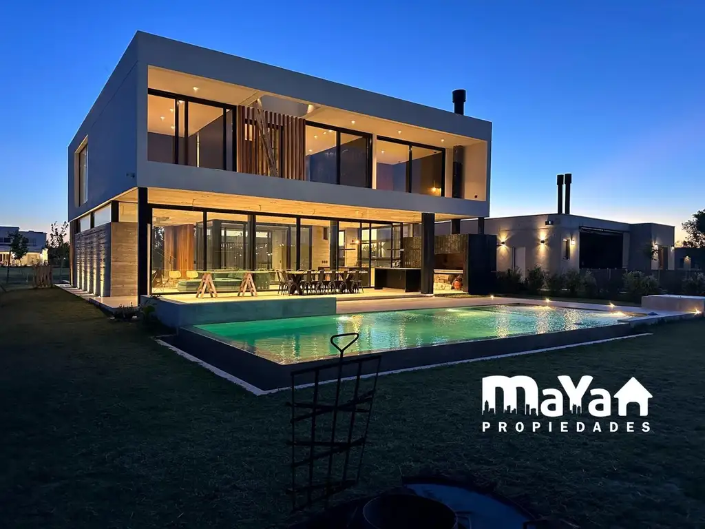 Ubicada dentro de uno de los barrios privados más buscados de Escobar, esta propiedad de 780 m² de lote y 350 m² cubiertos se presenta como una pieza única de arquitectura moderna, donde el hormigón visto, la madera y los grandes planos vidriados conviven en perfecto equilibrio.