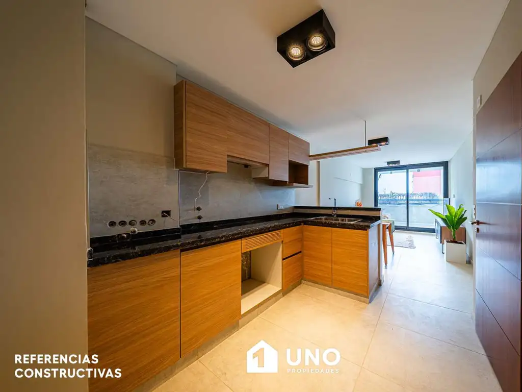 Semipiso orientado al norte con Ventilación Cruzada y doble balcón, entrega en Julio de 2026. Con ingreso por el estar/comedor con balcón terraza al frente, la cocina semi separada, totalmente amoblada y equipada con artículos de 1º calidad, baño completo con bañera, el dormitorio con placard con interiores terminados y salida al segundo balcón/lavadero al contrafrente sur.