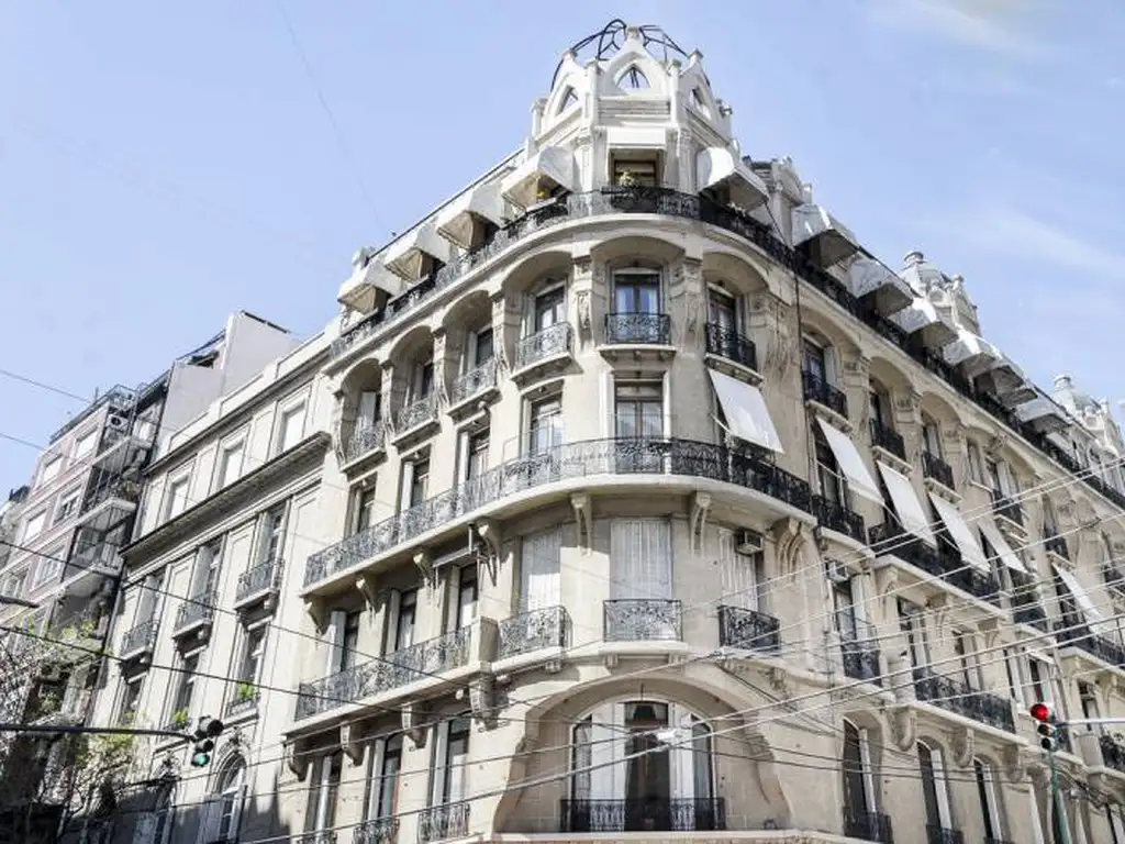 Cuenta con 3 ambientes de recepción, escritorio, living y comedor que dan a Riobamba y toilette.