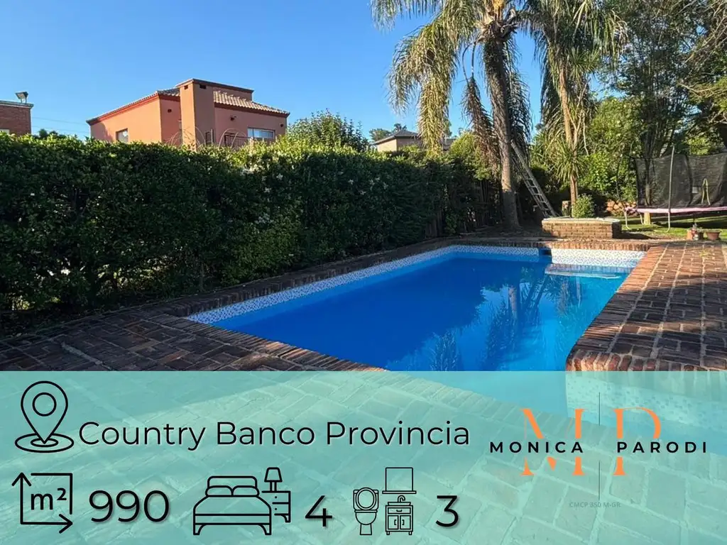 Ubicada dentro del reconocido Country Banco Provincia, esta propiedad combina amplitud, comodidad y un entorno exclusivo. El barrio se destaca por su seguridad permanente, su entorno natural y una infraestructura deportiva y social de primer nivel, ideal para quienes buscan calidad de vida y tranquilidad a pocos minutos de accesos principales.