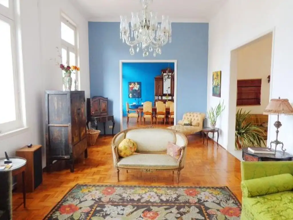 Excepcional piso de estilo de 7 ambientes con 2 dependencias de servicio. Tiene una superficie propia de 280m2, distribuidos en: amplio hall de entrada, estar y comedor con balcón francés, 5 dormitorios (uno de ellos en suite), 4 baños, cocina-comedor diario y dos dormitorios de servicio. Excelente reciclado a nuevo, con sistema de calefacción por radiadores, con caldera individual. El edificio cuenta con 2 entradas, ascensor principal y de servicio. Orientación Este-Norte, muy buena luminosidad y vista abierta. Ubicado próximo al Metrobus del Bajo y de la 9 de Julio, Universidad UADE y líneas de subterráneo C y E.