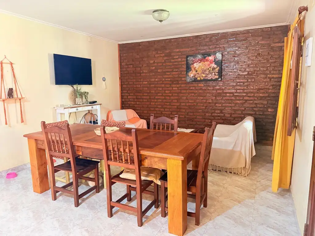 Se desarrolla en planta baja, cuenta con jardín al frente y cochera semicubierta, al ingresar cuenta con un amplio espacio que integra living, comedor y cocina, por un pasillo se accede a la parte intima baño completo y dos dormitorios. Patio con pileta y quincho con asador, baño completo y sector de lavadero. También se puede ingresar al quincho desde un pasillo lateral desde la cochera.