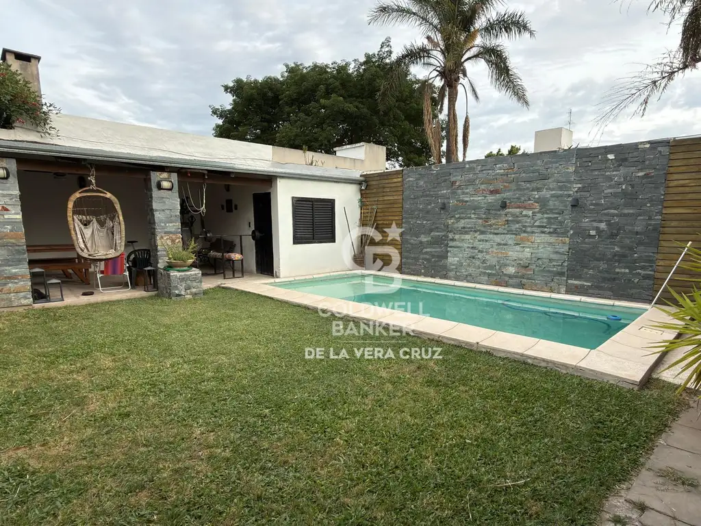 El exterior invita a relajarse: jardín al frente que conecta con las cocheras y patio al fondo con quincho abierto, parrilla y una pileta ideal para disfrutar en familia o con amigos. La propiedad cuenta con todos los servicios, incluida perforación para llenar la pileta sin utilizar agua corriente. Dispone además de una sala de máquinas y un espacio de guardado para herramientas.