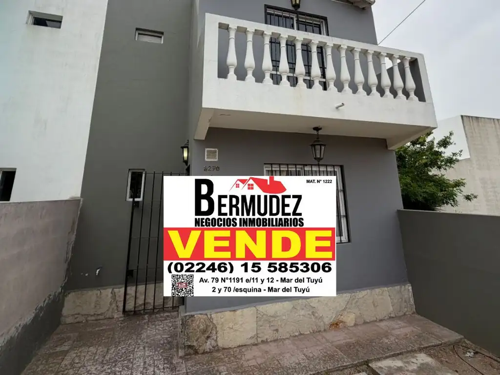 ¡Oportunidad única en Mar del Tuyú! Este hermoso dúplex de 3 ambientes ofrece una ubicación inmejorable: a tan solo 5 cuadras del mar, a 3 cuadras de Av. 79, ingreso a la localidad y zona de comercios. ¡Todo a tu alcance!
