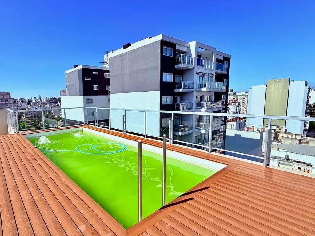 Piscina con duchas y deck solarium ubicado en el piso 13.
