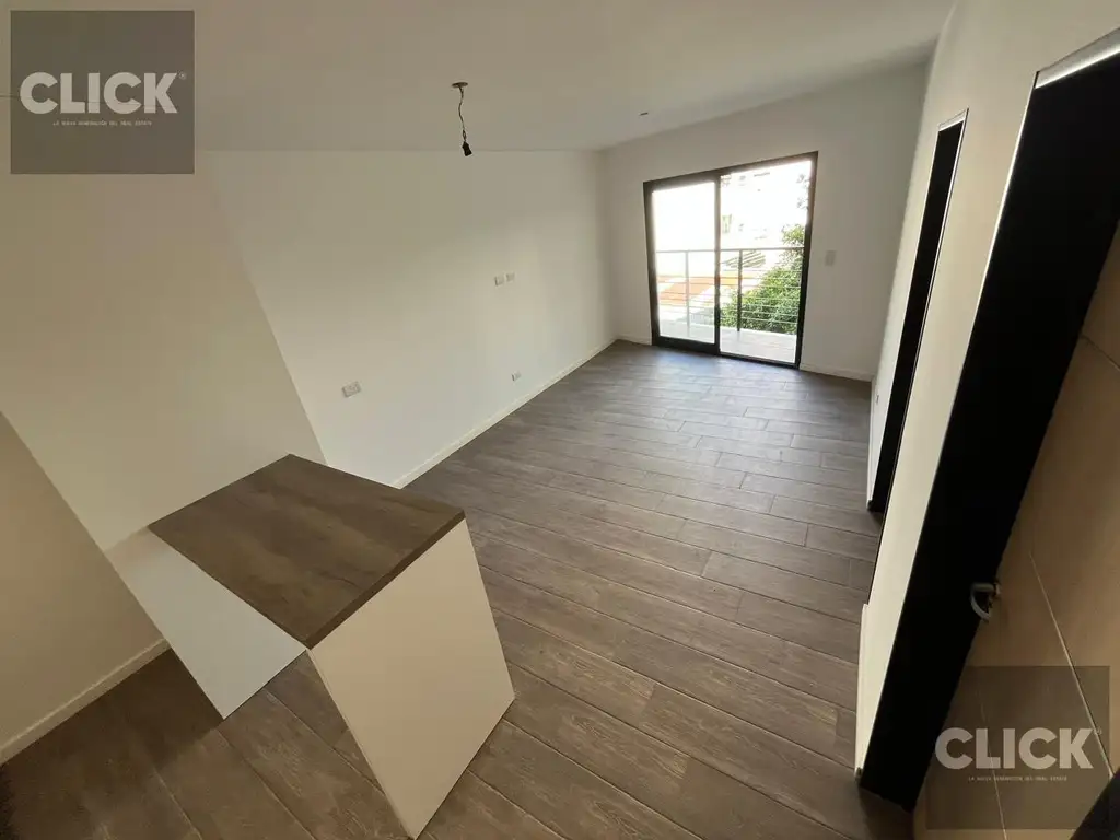 El departamento cuenta con un diseño moderno y acabados de alta calidad. Los suelos de porcelanato símil madera aportan calidez y elegancia, mientras que el baño completo, con luz natural y revestimiento de porcelanato símil carrara combinado con madera, incluye un vanitory y espejo, además de artefactos de primer nivel. Las puertas de madera con detalles en acero inoxidable complementan el diseño sofisticado del espacio.