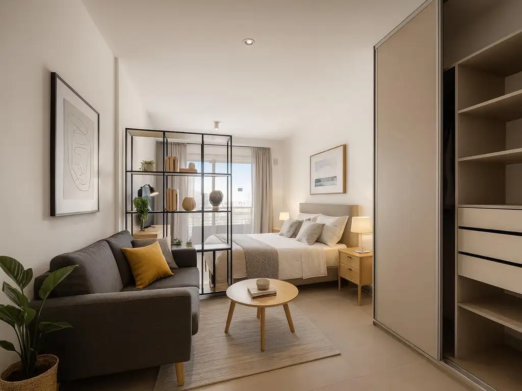 INTEGRAD0 EL LIVING COMEDOR- DORMITORIO, CON SALIDA A CóMODO BALCON.