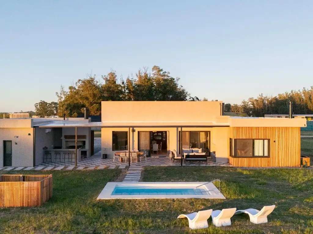 Propiedad moderna y luminosa, con amplios ventanales y ambientes integrados. El terreno de 5.000 m2 brinda privacidad total y vistas abiertas a la naturaleza. Cuenta con 200 m2 construidos y una galería de 90 m2.