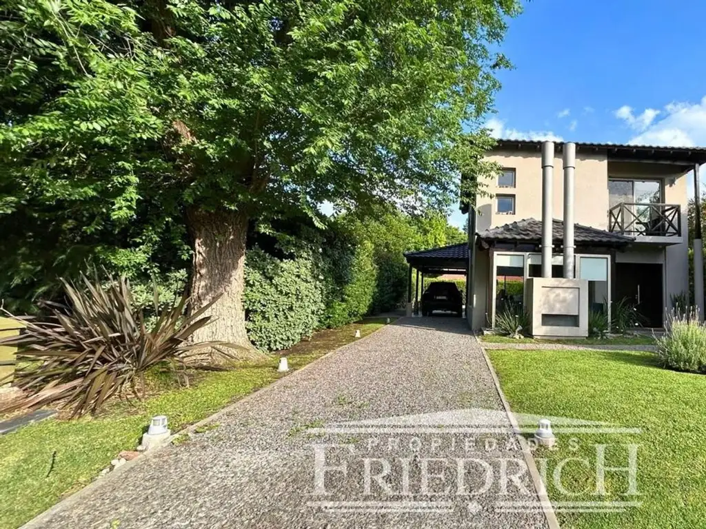 En la planta alta, un hall de distribución conecta un cómodo espacio de escritorio y una salida al balcón con vista al frente. El dormitorio principal ofrece vestidor y baño en suite, con vista al contrafrente y a la piscina. Los otros dos dormitorios, ambos con placard, comparten un baño completo. La propiedad cuenta con calefacción por losa radiante y riego por aspersión.