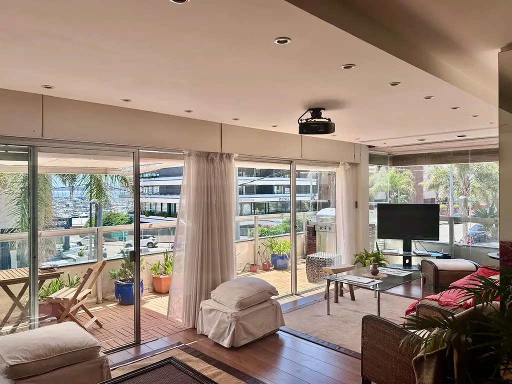 Amplio living con zonas sectorizadas, con un baño de vistas, hermosas vistas al puerto, salida a un amplio balcon que cuenta con parrilla a gas.