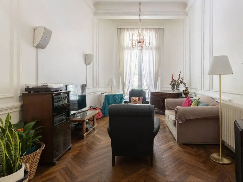 Palier semi privado. Hall de entrada. Living, comedor & escritorio. Baño completo.