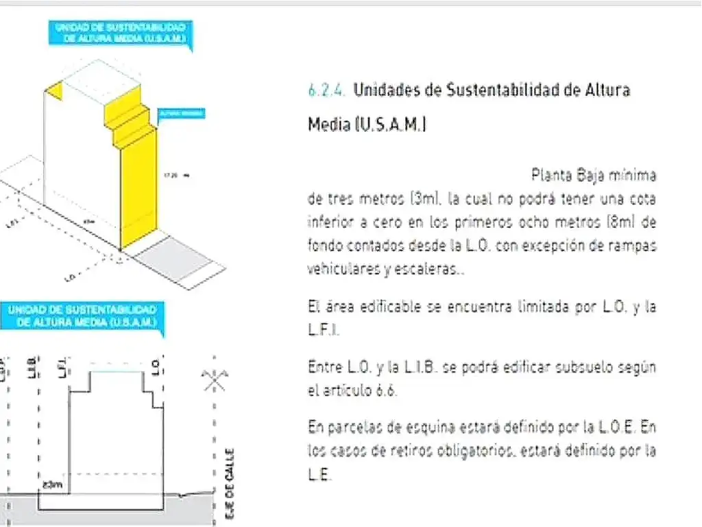 El lote cuenta con zonificación USAM (Unidad de Sustentabilidad de Altura Media), que permite desarrollar una planta baja, 5 pisos y 2 retiros. Esta categoría urbanística favorece proyectos residenciales y mixtos con excelente potencial constructivo, garantizando una integración armónica con el entorno urbano de la zona.