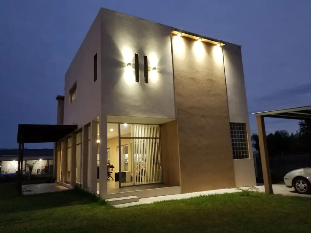 Cuenta con 3 dormitorios, 2 baños, living comedor, cocina comedor con barra, galería, parrilla, jardín parquizado, piscina y cochera.