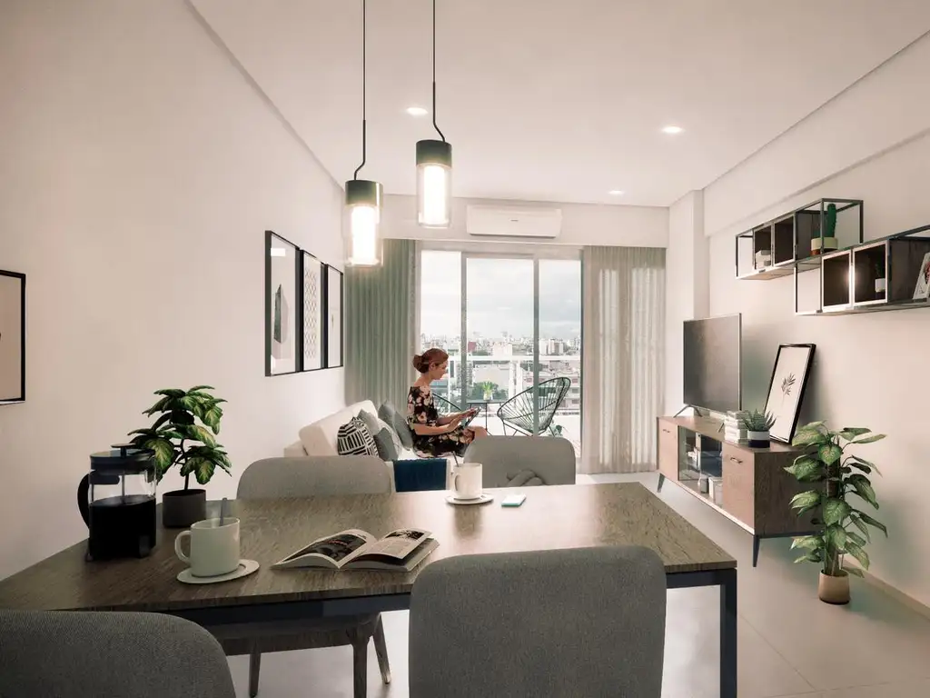 El departamento está diseñado con mesadas que imitan a Silestone y cuenta con aire acondicionado frío-calor en todos los ambientes, asegurando confort en cualquier época del año. La calefacción por radiadores y la caldera individual añaden un toque de calidez, mientras que la carpintería exterior con doble vidrio hermético (DVH) garantiza tranquilidad y eficiencia.