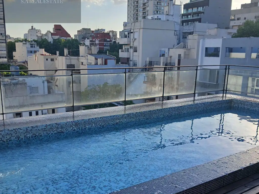 El monoambiente, en impecable estado, dispone de un amplio ambiente, con un equipo de aire acondicionado frío-calor y un gran placard de dos puertas espejadas, y tiene salida al balcón corrido; cocina americana integrada, con anafe de dos hornallas, horno, bacha de acero inoxidable, mueble bajo mesada y despensero); y baño completo con bañera; mientras que el edificio cuenta en el último piso (el 7mo.) con piscina, parrilla, salón de usos múltiples (SUM) y laundry.