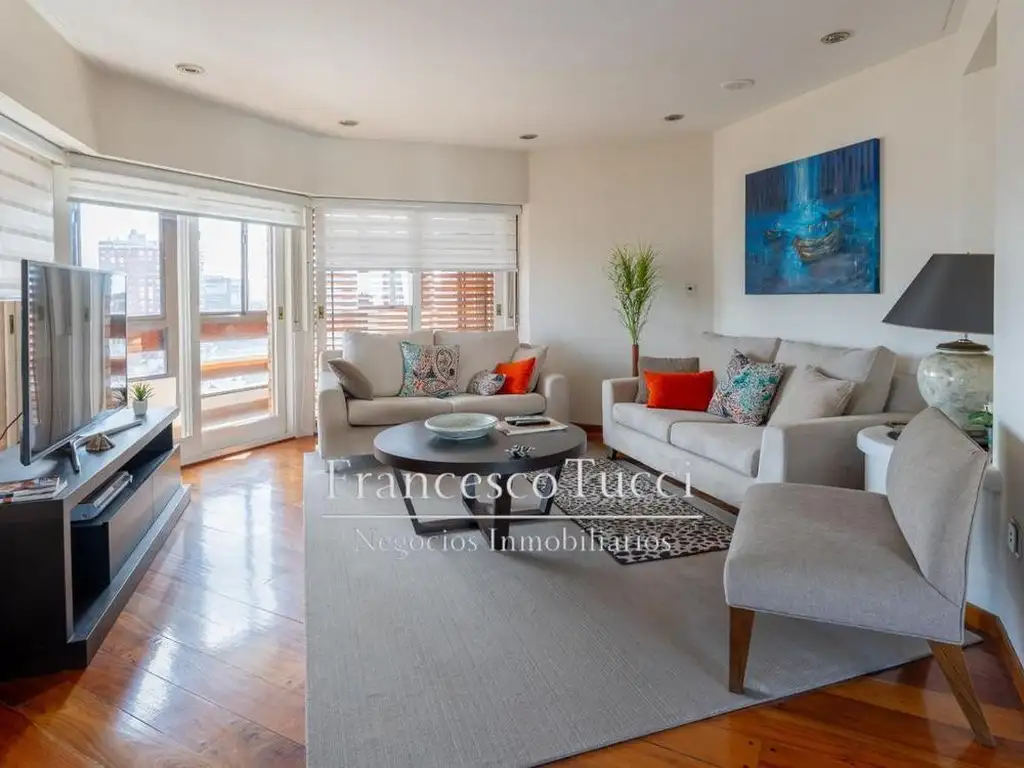 Al ingresar por el ascensor principal, nos encontramos con el palier privado y luego un gran living comedor con pisos de madera y rodeado íntegramente por el extenso balcón con cerramiento. Hacia la izquierda, un comedor diario semi separado de la cocina.