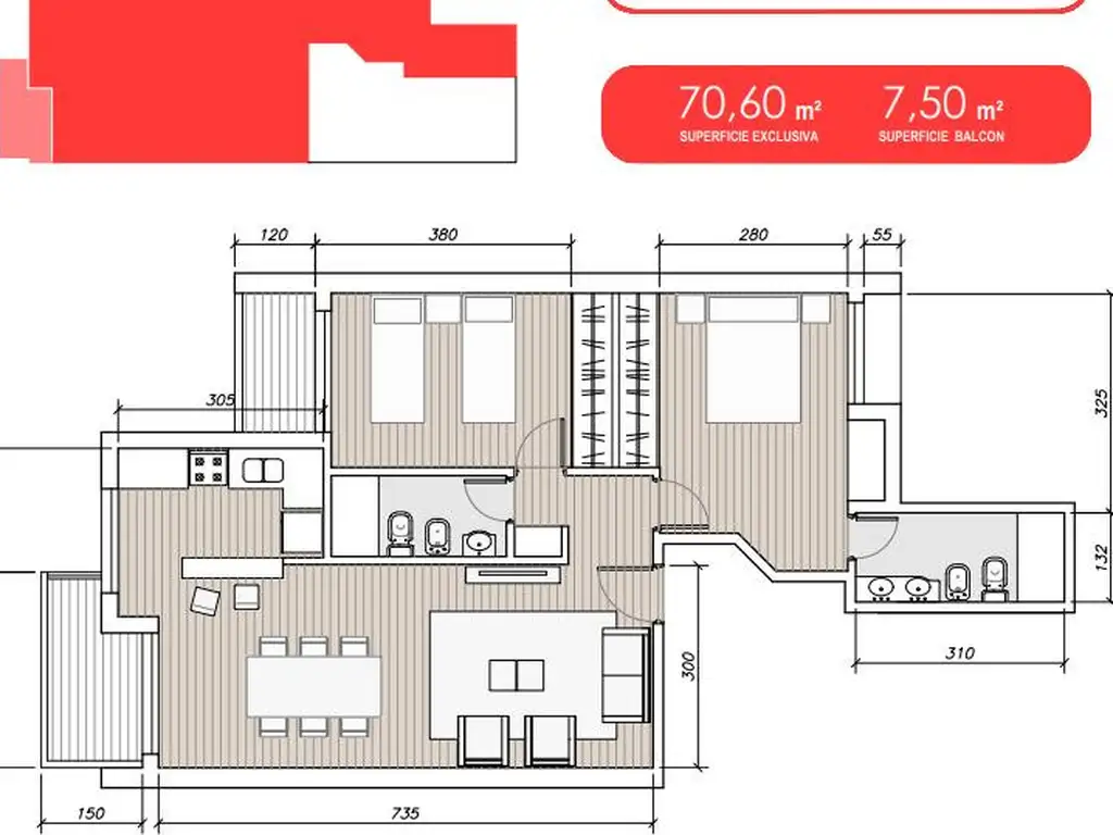 Sup. Total: 70 m2