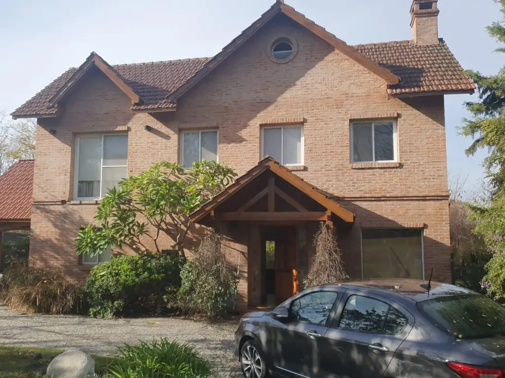 Chalet clasico pisos de madera, amplio y luminoso. Living comedor con hogar, hermosas vistas al jardin.