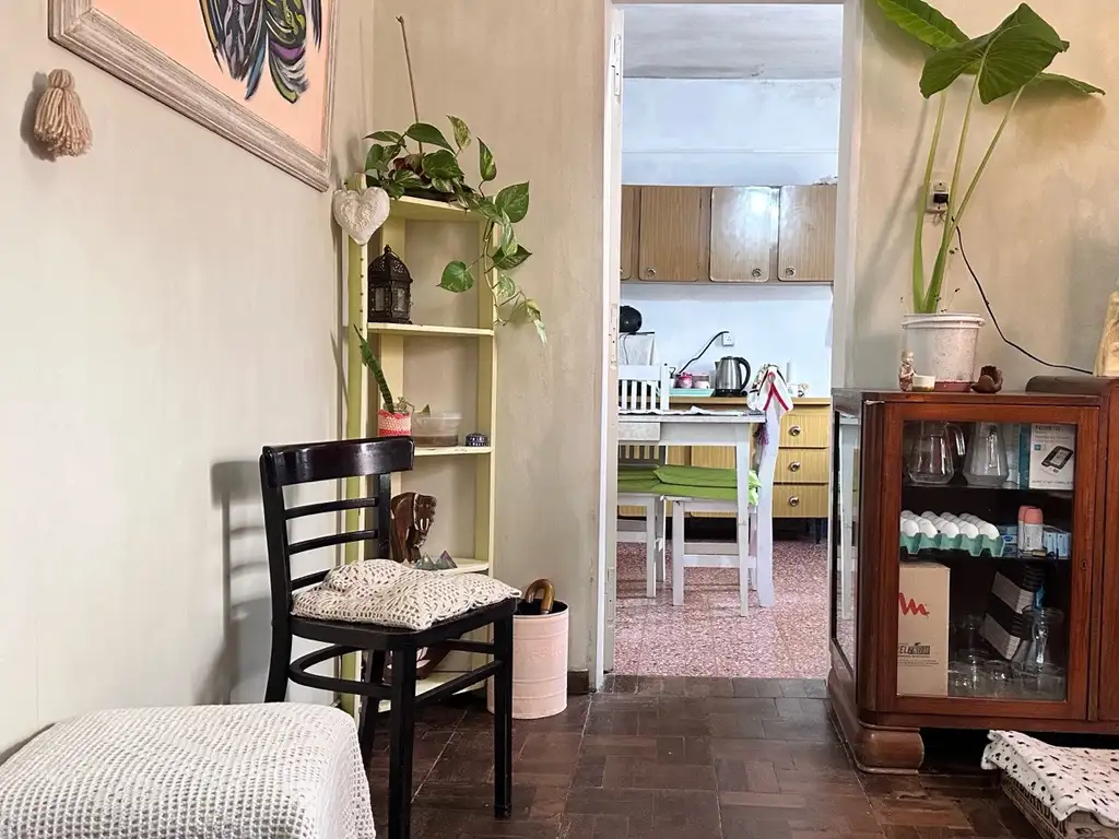 Casa principal al frente a reciclar dos dormitorios, living comedor, baño, cocina independiente con lavadero y despensa.