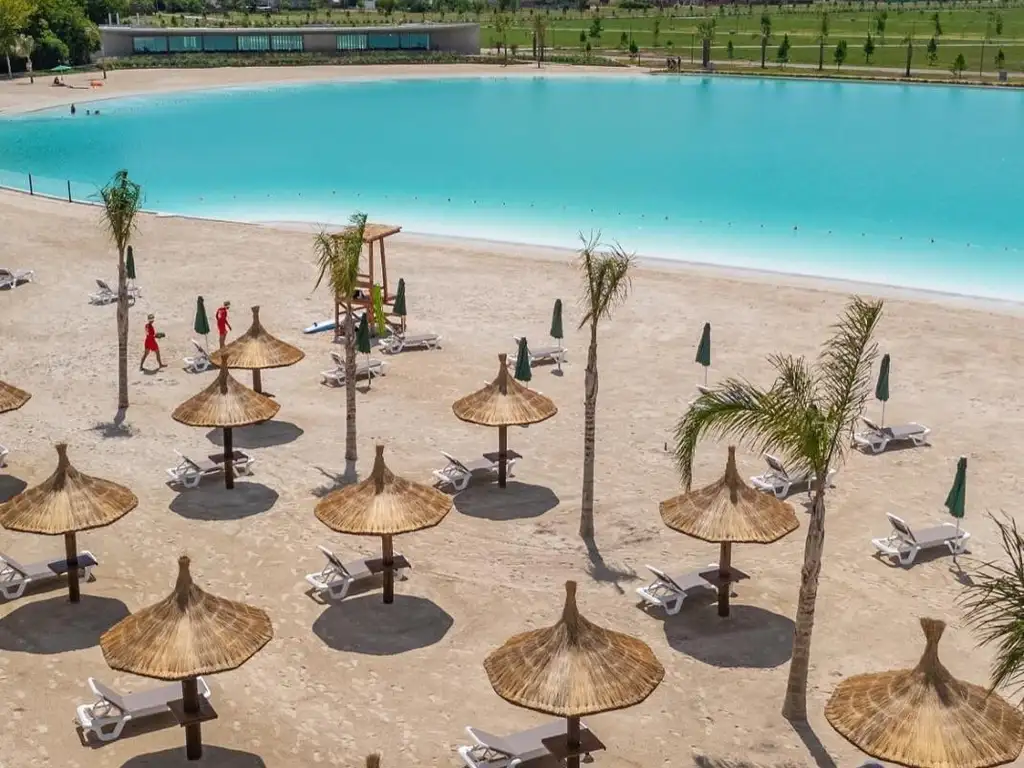Los dos sectores de playa de arena que totalizan 12.000 m2, un muelle y un club house. La laguna tendrá una profundidad de hasta 1,5 m en zona de playa y un máximo de 2,4 m en el área destinada a deportes acuáticos.