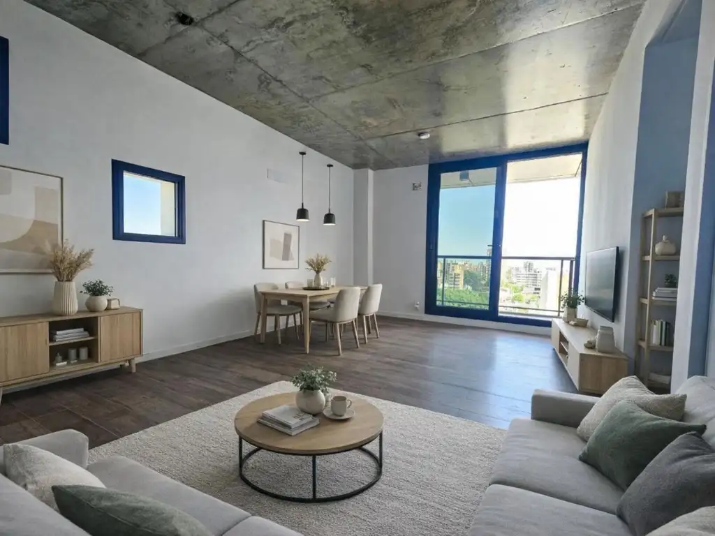 SOBRE INMUEBLE: departamento semipiso de categoría compuesto por living comedor con salida al balcón con vista a Av Francia , cocina en isla con amueblamientos completos, lavadero sectorizado, 2 dormitorios con placares e interiores completos, el dormitorio principal con salida al balcón y 1 baño completo con ante baño