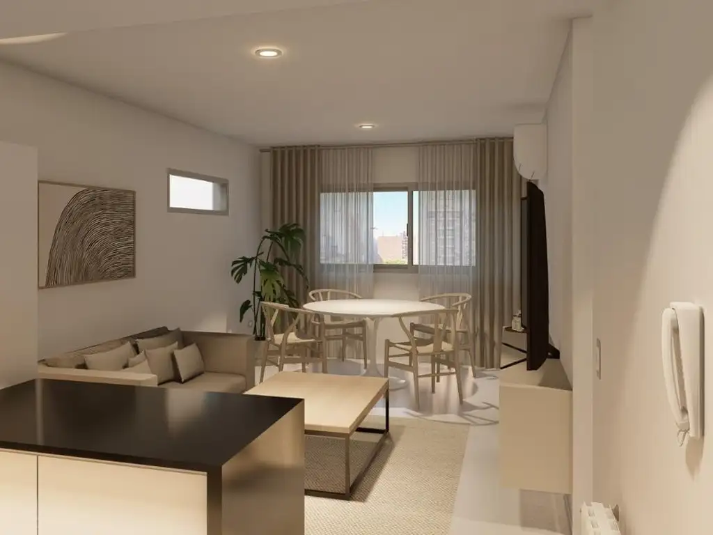 La unidad cuenta con amplio living-comedor con salida al balcón. La cocina semi integrada por una barra, se presenta totalmente equipada, con mobiliario de primera línea y conexión para lavarropas.