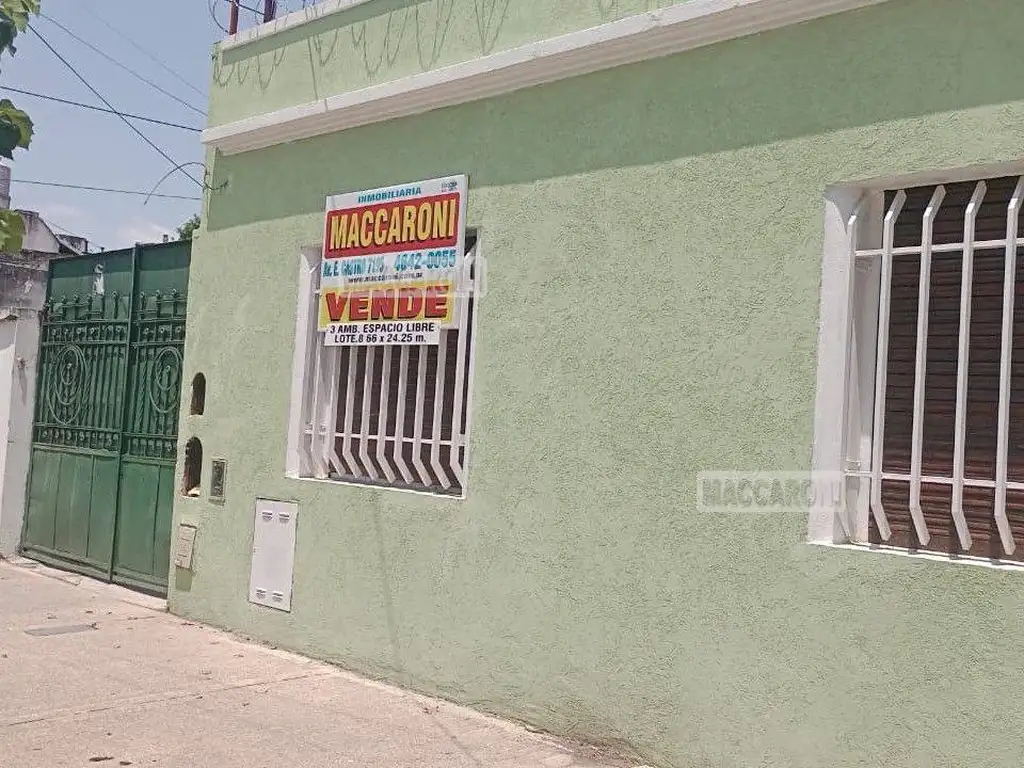 Casa de 3 ambs. amplios con fondo sobre lote de 8,66 x 24,25. Se accede a estar living que da al fondo, dos habitaciones al frente, cocina comedor, patio, fondo, sala de enceres, lavadero. Posibilidad de construir planta baja mas tres pisos.