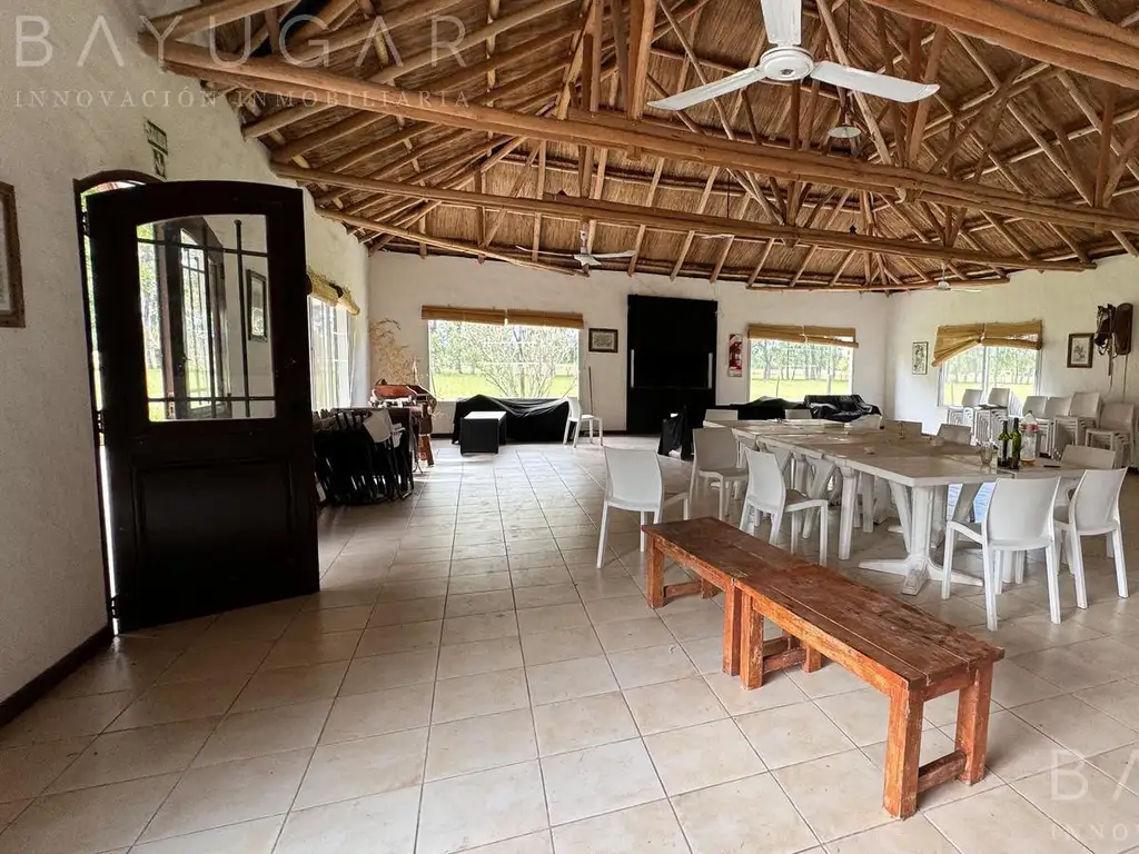 La infraestructura para eventos: salón de 250 m2, con capacidad para 80 personas y una cocina equipada para catering (comercial y freezer grande).