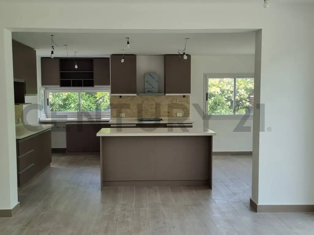 -Planta Baja: Se accede por un amplio hall de acceso a un Living y Comedor con salida al jardín, Toilette, Cocina con isla integrada, alacenas, Family, Lavadero y Dependencia de Servicio con baño.