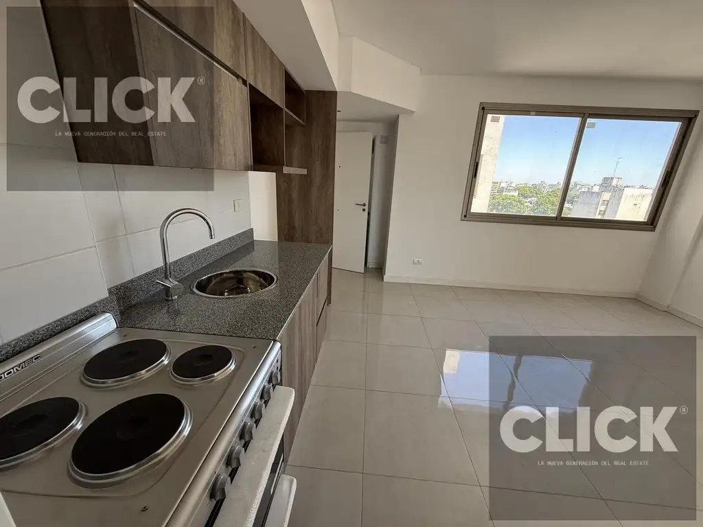 La unidad se destaca por su muy buena luminosidad y una distribución cómoda. El living comedor tiene un ventanal grande que aporta una excelente entrada de luz natural, y la cocina integrada acompaña con un espacio práctico. El dormitorio cuenta con salida directa al balcón, y el baño es completo.
