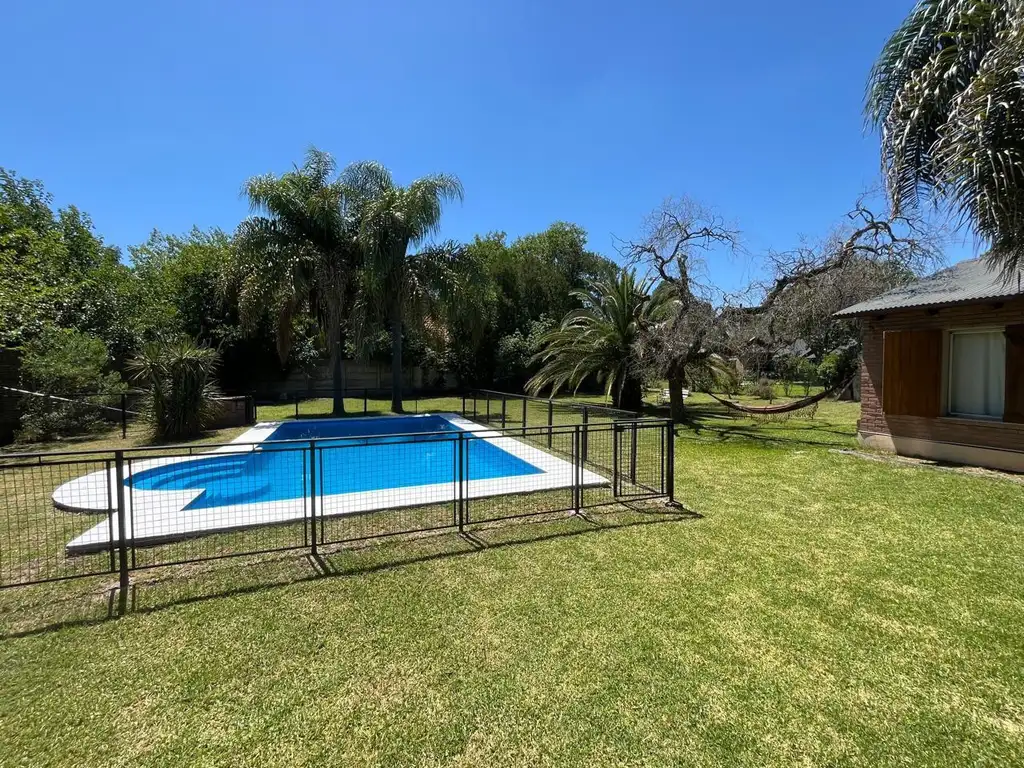 La propiedad cuenta con 3 dormitorios, 2 baños, living, comedor, cocina y lavadero. En su exterior encontraremos galería con parrillero, piscina y amplio jardín.