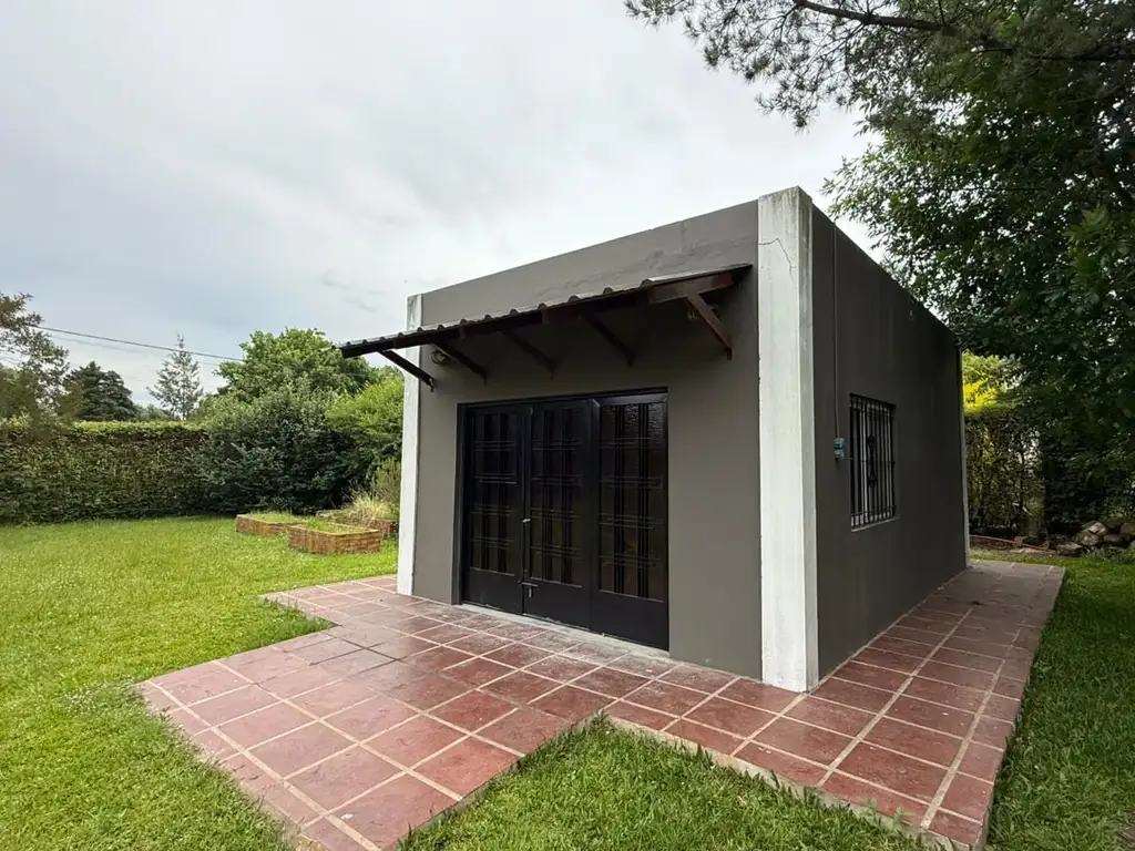 IMPECABLE CUARTO sobre lote en esquina de 1000m2 con hermosa parquizacion, alambre perimetral con cerco vivo completo y portón principal de madera. Desarrollado en una sola planta. Gran ambiente con hogar y salamandra.