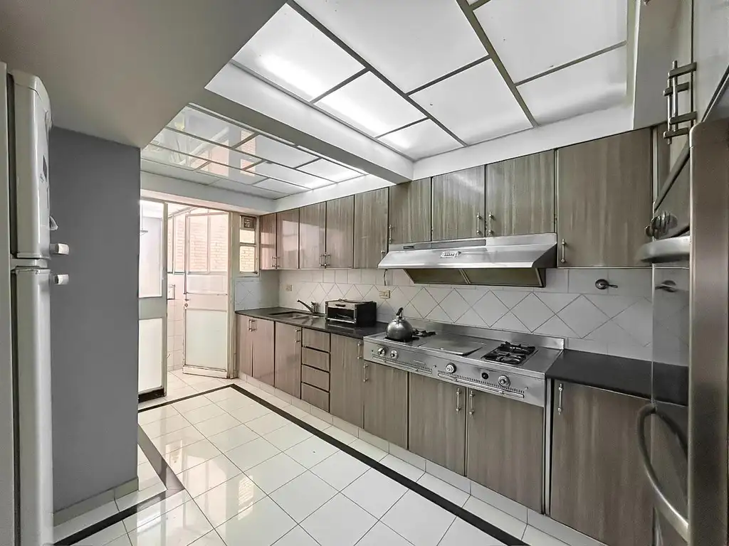 Amplio estar comedor con salida a balcón sobre calle 9 de Julio, comedor diario, cocina separada, lavadero independiente, habitación y baño de servicio,