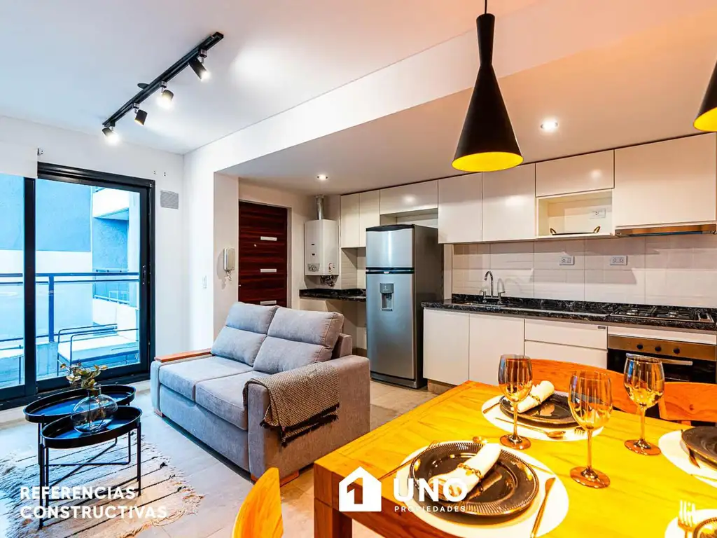Departamento con gran patio de 30 m con entrega en Noviembre de 2027. Ingreso al estar/comedor con la cocina totalmente equipada, dormitorio con placard, patio al contrafrente oeste y baño completo.