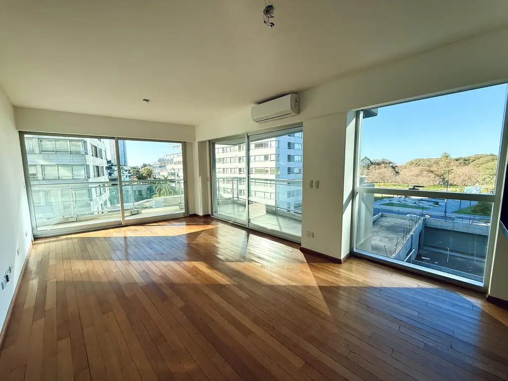 La unidad cuenta con un amplio living-comedor, cocina integrada totalmente equipada, balcón de gran metraje con vistas al frente, dos dormitorios con placares, uno de ellos en suite, baños (uno principal con bañera) y cochera fija cubierta.