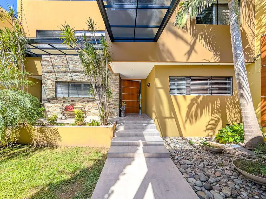 Pb: Living comedor, cocina comedor diario totalmente equipada, escritorio, toilette, lavadero independiente, galería con parrilla, jardín con piscina, baño auxiliar, cochera para 6 autos.